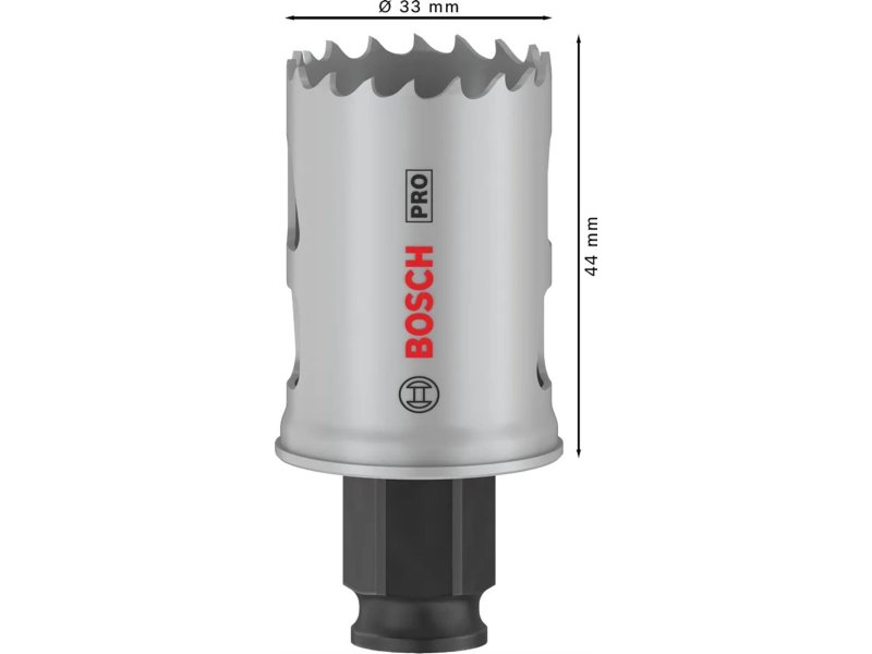 | Karakteristike | Prečnik: 33 mm Radna dužina: 44 mm Pogodno za: Meko drvo, Gips, Plastiku, Metalne cevi i profile, Obojene metale |
