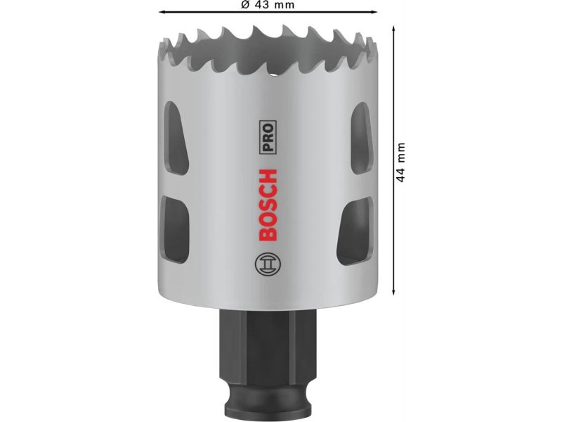| Karakteristike | Prečnik: 43 mm Radna dužina: 44 mm Pogodno za: Meko drvo, Gips, Plastiku, Metalne cevi i profile, Obojene metale |