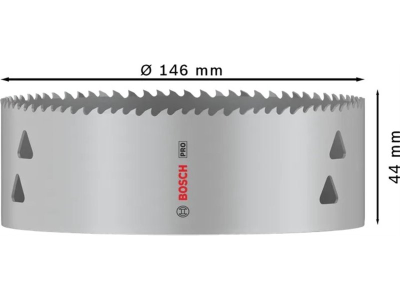 | Karakteristike | Prečnik: 146 mm Radna dužina: 44 mm Upotreba: Sa testerama za otvore sa navojem sa dubinom sečenja od 44 mm Pogodno za: Meko drvo, Gips, Plastiku, Metalne cevi i profile, Obojene metale |
