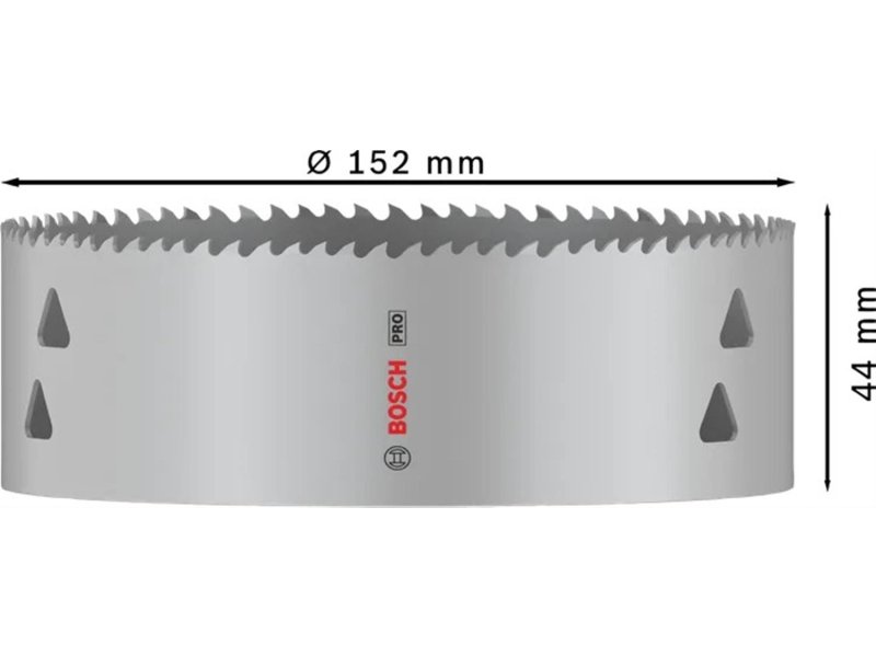 | Karakteristike | Prečnik: 152 mm Radna dužina: 44 mm Upotreba: Sa testerama za otvore sa navojem sa dubinom sečenja od 44 mm Pogodno za: Meko drvo, Gips, Plastiku, Metalne cevi i profile, Obojene metale |