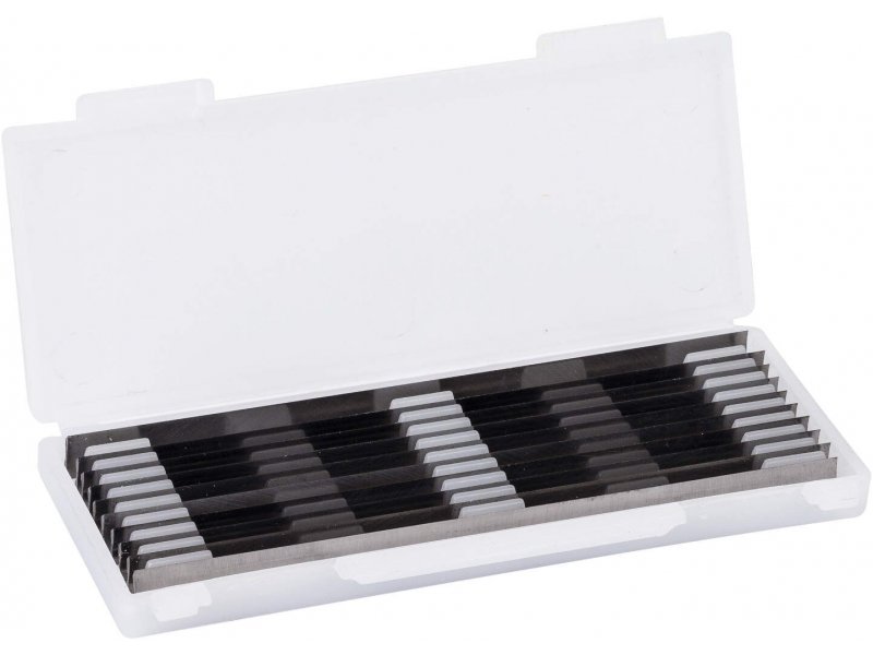 | Karakteristike | Tehnički podaci: Dužina: 82 mm Obe strane su naoštrene, okrenite nož kada se jedna strana potroši Materijal: tvrdi metal U pakovanju 10 komada Pogodno za: Tvrdo drvo / masivno drvo Meko drvo |