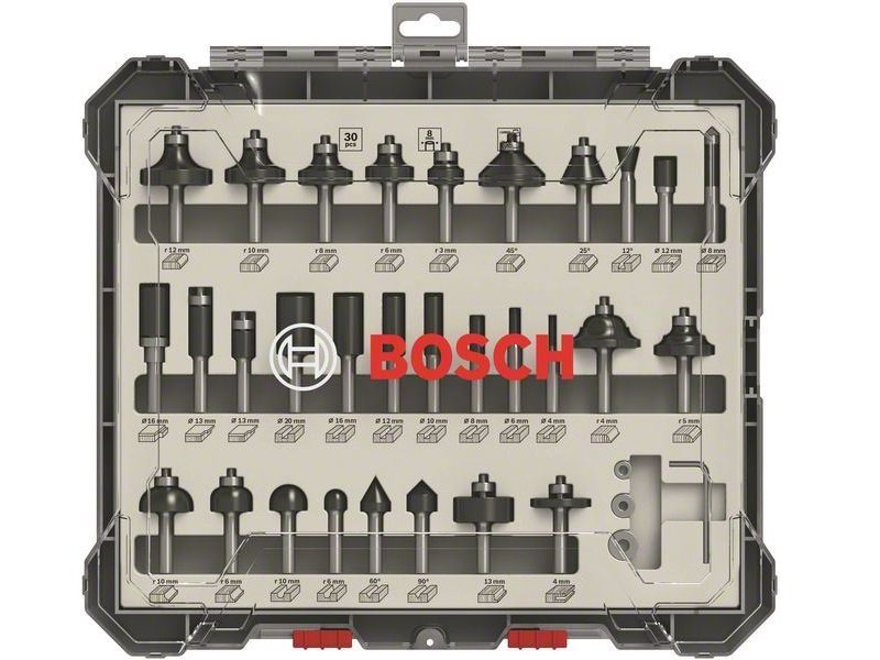 | Karakteristike | Bosch komplet raznih glodala, 30 komada, prihvat od 8 mm - 2607017475 Tehnički podaci: Tip, glodalo: 1-rezno ravno glodalo; 2-rezno ravno glodalo; 2-rezno ravno glodalo; 2-rezno ravno glodalo; 3-rezno ravno glodalo; 3-rezno ravno glodalo; 3-rezno ravno glodalo; Glodalo za zaobljavanje; Glodalo za zaobljavanje; Glodalo za zaobljavanje; Glodalo za zaobljavanje; Glodalo za zaobljavanje; Glodalo za glodanje u ravni površine materijala; Glodalo za glodanje u ravni površine materijala; Glodalo za glodanje po šablonu; Kopirno glodalo; Pločasto glodalo; Glodalo za pregibe; Nastavak za iskošavanje ivica; Nastavak za iskošavanje ivica; Glodalo za V-kanale; Glodalo za V-kanale; Glodalo za zupčaste žlebove; Nastavak za ukrasno iskošavanje ivica; Glodalo za poluokrugle kanale; Glodalo za poluokrugle kanale; Glodalo za kanale; Glodalo za kanale; Glodalo za polusferne rupe; Glodalo za usecanje žlebova za šarke Ukupna dužina (G) cola: 1 15/16; 2 2/16; 1 15/16; 2 6/16; 2 6/16; 2 6/16; 2 6/16; 2; 2 3/16; 2 3/16; 2 5/16; 2 6/16; 2 9/16; 2 1/16; 2 9/16; 2 6/16; 1 15/16; 2 2/16; 2 3/16; 2 2/16; 1 15/16; 1 14/16; 1 15/16; 2 1/16; 1 11/16; 1 12/16; 2 2/16; 2 2/16; 2 2/16; 1 10/16 Ukupna dužina (G) mm: 50; 54; 50; 60; 60; 60; 60; 51; 55; 55; 58; 60; 65; 52; 65; 60; 50; 54; 56; 54; 50; 48; 49; 52; 43; 45; 54; 54; 54; 42 Radna dužina (G) cola: 9/16; 13/16; 13/16; 1 3/16; 1 3/16; 1 3/16; 1 3/16; 6/16; 8/16; 9/16; 10/16; 12/16; 1; 8/16; 1; 12/16; 6/16; 6/16; 10/16; 8/16; 11/16; 10/16; 8/16; 8/16; 6/16; 8/16; 8/16; 8/16; 9/16; 8/16 Radna dužina (G) mm: 15; 20; 20; 30; 30; 30; 30; 10; 12,7; 14; 16; 19; 25; 13; 25; 19; 9,5; 9,5; 16; 13; 18; 16; 12; 12; 10; 13; 12; 12; 14,3; 13 Dužina drške mm: 35; 34; 30; 30; 30; 30; 30; 41; 42,3; 41; 42; 41; 40; 39; 40; 41; 40,5; 44,5; 40; 41; 32; 32; 37; 40; 33; 32; 42; 42; 39,7; 29 Prečnik (D) mm: 4; 6; 8; 10; 12; 16; 20; 19; 25,4; 28,6; 31,8; 38; 12,7; 12,7; 16; 8; 31,85; 31,85; 35; 25; 16; 16; 12,7; 27; 12; 20; 22,2; 28,6; 32; 12 Pogodno za: Drvo i materijale na bazi drveta Zakonska saobraznost 24 meseca |