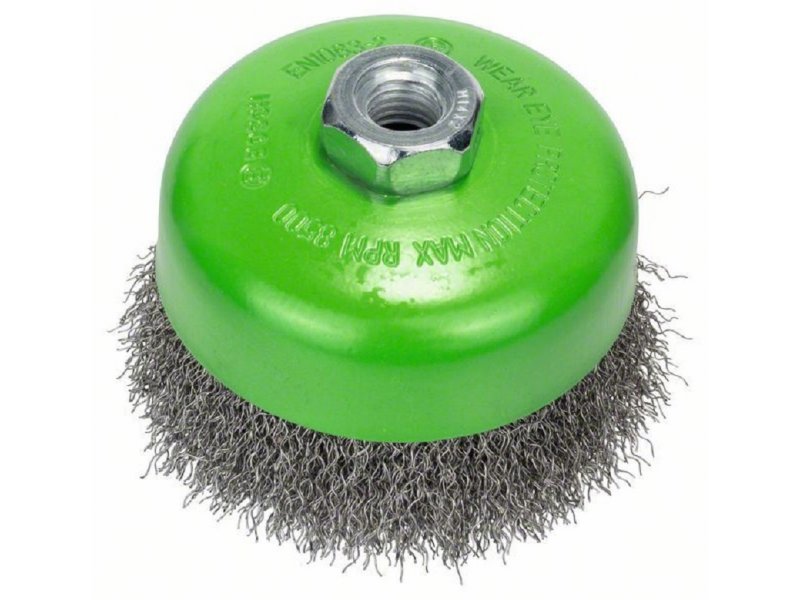 | Karakteristike | Bosch 2608622103 osobine: Lončasta četka – talasasta žica, nerđajuća Prikladna za lake do srednje radove čišćenja na srednjim do velikim površinama od nerđajućeg čelika, aluminijuma i obojenog metala, na primer za uklanjanje obloga, uklanjanje rđe, nahrapavljenje, matiranje, uklanjanje laka, strukturisanje. Za sve ugaone brusilice sa navojem M 14 i za GGS 6 S Professional 100 mm, 0,3 mm, M14 Tehničke karakteristike: Prečnik mm: 100 Debljina žice mm: 0,30 Broj obrtaja, maks. min-1: 8.500 Navoj M: 14 Pogodno za: Metali koji sadrže gvožđe | nerđajući čelik/inoks Metali koji sadrže gvožđe | čelik/metal koji sadrži gvožđe Metal koji ne sadrži gvožđe | lim od obojenih metala Metal koji ne sadrži gvožđe | aluminijum |