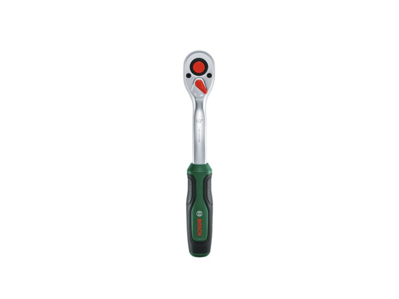 Bosch set račne od 1/2" visokih performansi je sve što je potrebno za kućne mehaničarske poslove i samostalno montiranje. Račna obezbeđuje impresivno veliki obrtni moment i do 768 Nm, što je bar 50% preko trenutnog ISO standarda (u skladu sa standardima: ISO 3315, ISO 1174). Njen zupčanik praškaste metalurgije sa 72 zupca omogućava radni ugao od 5° za bolji prenos snage i rad u skučenom prostoru. Praktično dugme za zaključavanje omogućava bezbedno pričvršćivanje o otpuštanje adaptera. Za brzu promenu smera, intuitivni prekidač može da se pomeri s leva na desno. Dvokomponentna ručica ima ergonomske meke rukohvate za dodatnu kontrolu i udobnost.