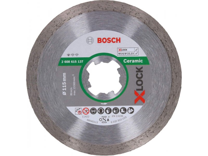 Menjanje dijamantskih ploča je brzo i lako zahvaljujući sistemu bez zaključavanja X-LOCK. X-LOCK dijamantske ploče odgovaraju i standardnim ugaonim brusilicama. Za čiste rezove na keramičkim pločicama. Pristupačno rešenje za opšte korišćenje na pločicama. Sinterovana ivica sečiva.