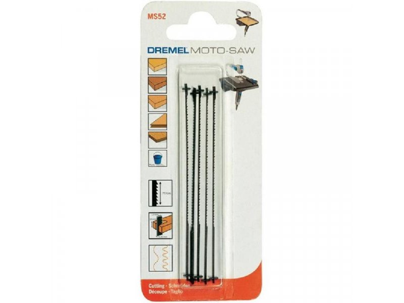 | Karakteristike | Dremel MS52 tehničke karakteristike: DREMEL® Moto-Saw Sečivo testere za sečenje drveta sa finim zupcima Sečivo testere za detaljne rezove u drvenim materijalima Ovo sečivo ima 7 zubaca po santimetru, što omogućava najfinije rezultate sečenja Ukupna dužina 100 mm Dubina sečenja 12 mm Zubaca po centimetru 7 Debljina sečiva 0,2 mm Dubina sečiva 1,9 mm. Obim isporuke: 5 komada |