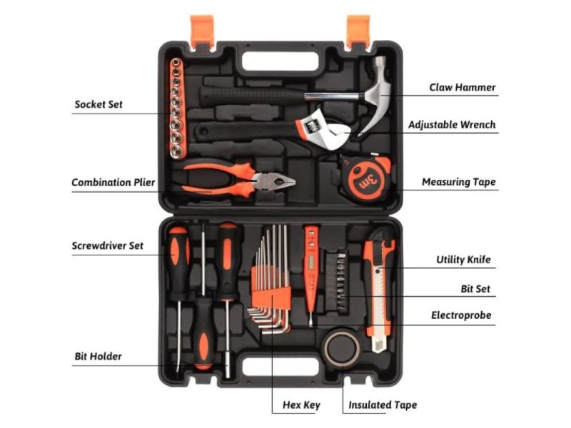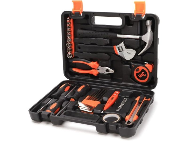 | Karakteristike | Sadržaj kompleta : Razni šrafcigeri (ravni i krstasti) Nasadni (gedorski) ključevi i nasadni nastavci Ključevi (ravni, kombinovani) Klešta i sekači žice Mini čekić Noževi za sečenje Rol-metar / metar Imbus ključevi Ostali mali pomoćni alati Prednosti i karakteristike: Kompletan set za skoro sve poslove u i oko kuće Atraktivna kombinacija boja — crna i narandžasta — moderna i primetna Praktično pakovanje u kutiji — održava red, štiti alate Kvalitetni materijali — otpornost i dugovečnost Savršen za poklon — idealan za stanare, domove i radionice |