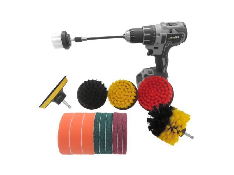 Set univerzalnih četki i dodataka za bušilicu predstavlja praktično i efikasno rešenje za dubinsko čišćenje različitih površina u domu, garaži, kupatilu ili vozilu