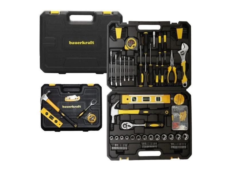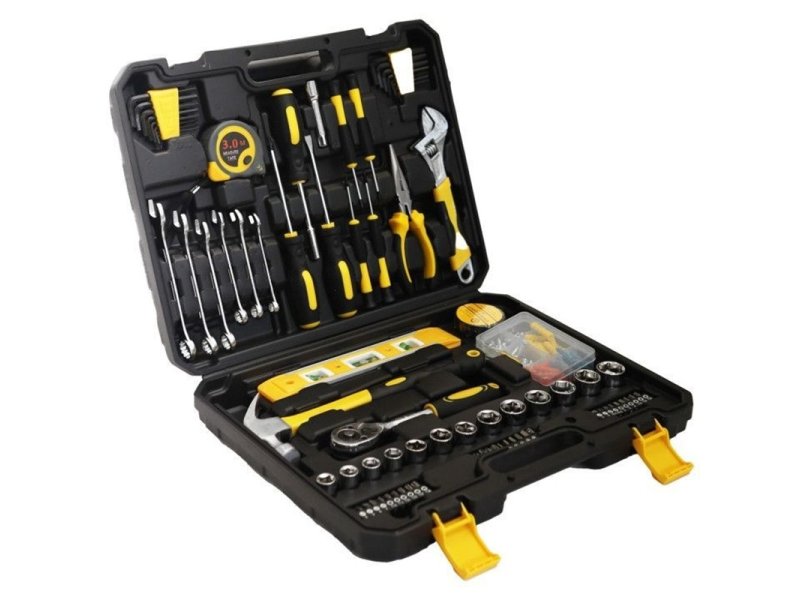 | Karakteristike | Ovaj opsežan set sadrži 140 elemenata namenjenih za kućne i radionicke poslove. Alati su izrađeni od izdržljivog karbonskog čelika i hrom-vanadijuma, što im pruža otpornost na intenzivnu upotrebu. Gumirani rukohvati garantuju čvrst i siguran hvat čak i u teškim uslovima. Čvrst kofer sa posebno predviđenim mestima za svaki alat omogućava lako organizovanje i siguran transport. Set uključuje, između ostalog, imbus ključeve, viljuškaste ključeve, račvast ključ, podesivi ključ, odvijače, bitove, klješta, čekić, libelu, metar i set tiplova. Idealno je rešenje za sklapanje nameštaja, kućne popravke ili rad u garaži. Dimenzije pakovanja: 9 × 33 × 41 cm Težina: 4,25 kg |