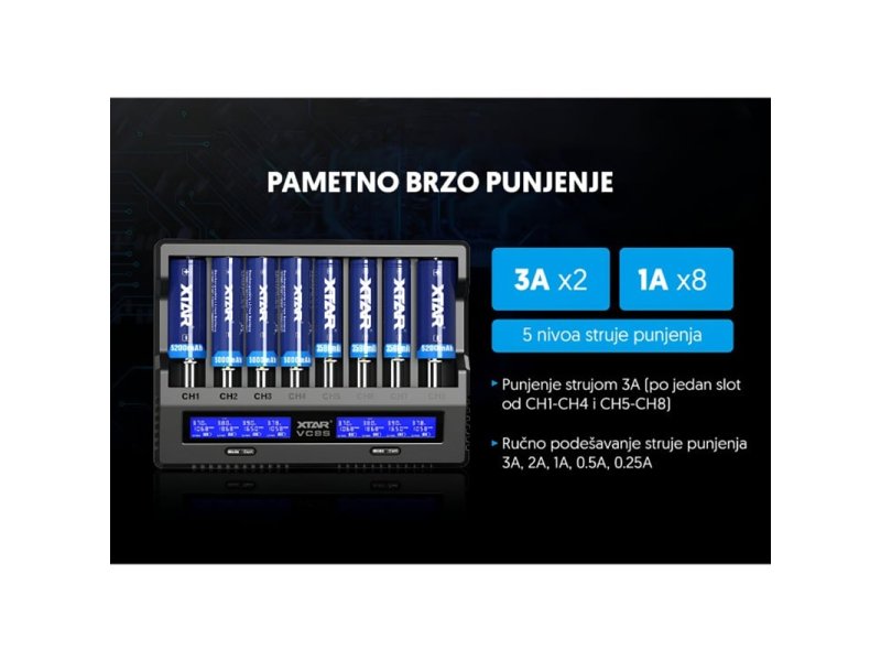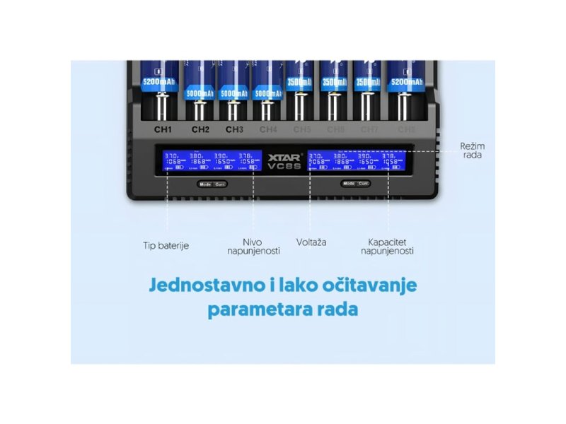 XTAR Univerzalni punjač akumulatora do 8 kom. sa displejem