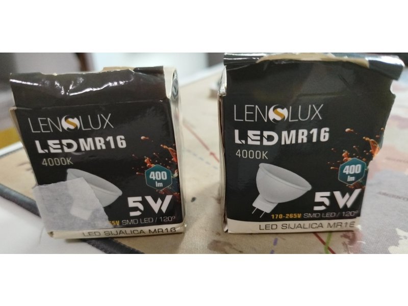 | Karakteristike | Model / Tip: GU5.3 (MR 16) Nazivni Napon: 220-240 V AC Tip Grla: GU 5.3 Nazivna Snaga: 5 W Temperatura Boje Svetlosti: 4000 K Svetlosni Fluks: 400 lm Izvor Svetlosti: SMD LED Dimabilnost: Ne Materijal: Termoplastika Dimenzije: Φ 50 mm, h-48 mm Ugao Rasipanja Svetlosti: 120° Indeks Reprodukcije Boje (CRI): ≥80(Ra) Temperatura Okruženja (ºC): -20 °C do +40 °C Prosečan Radni Vek: 30 000 h na 25° C Broj Uključenja / Isključenja: 15 000 Energetska Efikasnost: A+ Stepen Električne Zaštite: Klasa II IP Zaštita: IP 20 Osnovno Pakovanje: 10 kom Transportno Pakovanje: 50 kom Potrošnja Elek. Energije: 5 Kwh / 1000h |