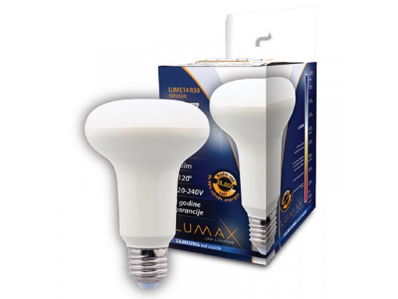 | Karakteristike | Snaga: 5W Ekvivalent klasičnoj sijalici: 30-40W Lumen (jačina svetlosti): 450lm Napon: 220-240V Ugao osvetljenja: 200° Boja svetlosti: 6500K Hladno-bela Grlo: E14 Materijal: plastika+aluminijum LED čip: SAMSUNG Radni vek: 35000 Radna temperatura: °C -20/+40 Dimenzija: D50x87 Energetska efikasnost: A+ Potrošnja: 5kWh/1000h Jačina struje I: I = 41mA |