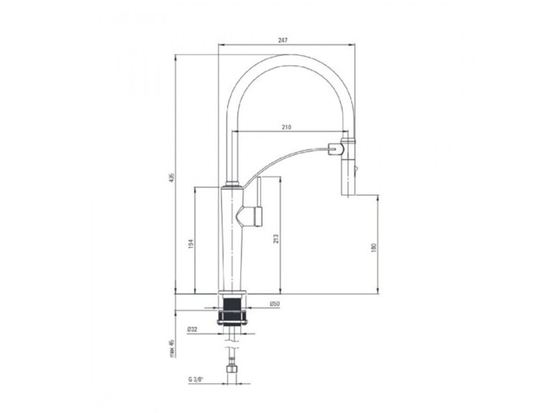 Tip Jednoručna slavina sa elastičnim izlivom i dva tipa mlaza.