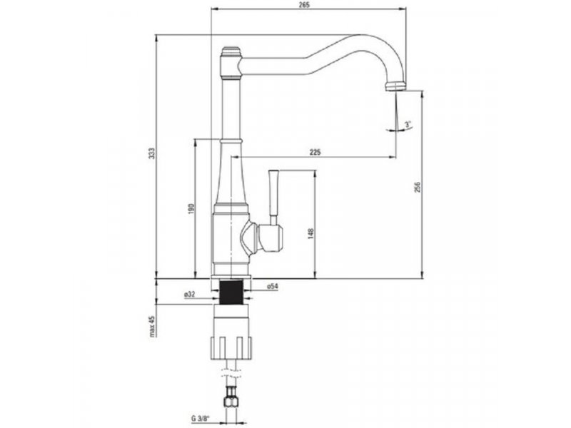 | Karakteristike | Izvlačivi tuš: ne Dužina priključnih creva: 45 cm Uložak keramički: 2,5 cm Visina: 333 mm Dužina do izliva: 225 mm Klasa protoka: A - 9-15 l/min Akustična klasa: 1, do 20 dB Povezivanje: sa dve cevi (visok pritisak) Veličina aeratora: M24 Instalacioni navoj 3/8" Priključni navoj: M8 Perlator (aerator) Laka instalacija Lako čišćenje |