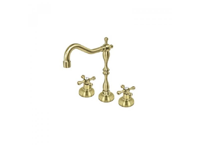 Dvoručna Rosan baterija sa tri otvora Roma, izliv is serije Brontee dizajn davno prošlih vremena u kombinaciji sa najsavremenijim tehničkim rešenjima, zlatne boje. Zidna montaža metalni rukohvat, hromirane rozete, pokretni izliv 200mm. Preporučeni radni pritisak: 3 bara, preporučena temperatura vode: 50°C.