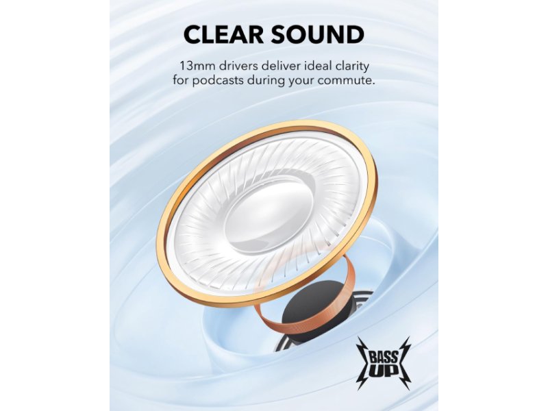 | Karakteristike | Unutrašnjost uha Sistem: 2.0 (Stereo) Frekventni opseg: 20Hz - 20kHz Osetljivost: 123.5dB Impedansa: 16Ω Dimenzije drajvera: 13mm Konstrukcija: Polu-otvorene Povezivost - Tip povezivosti slušalica: Bežične Konekcija slušalica: Bluetooth 5.3 Bluetooth profili: A2DP (Advanced Audio Distribution Profile),AAC,AVRCP (Audio/Video Remote Control Profile),HFP (Hands-Free Profile),SBC Domet: Do 10m Priključci: USB-C priključak za punjenje Podržane tehnologije: Multipoint,One-Step uparivanje Podržane tehnologije: ANC (Active Noise Cancelling),BassUp tehnologija Upravljanje: Soundcore aplikacija Dodatne funkcije: 22 različita EQ podešavanja,Automatsko isključivanje Brzo punjenje - 10 minuta punjenja pruža i do 2 sata slušanja muzike,Game Mode,Kontole na dodir slušalica Ostalo: 2 mikrofona,IPX5 otpornost na vodu,Vreme punjenja do 3 sata Mikrofon - Frekventni opseg: 20Hz - 20kHz Osetljivost: -42dB Podržane tehnologije: AI Clear Calls Odnos signal-šum: 58dB Baterija - Autonomija: 2x 43mAh + 700mAh,Do 36 sati (sa kućištem) Tip: Litijum-polimerska Fizičke karakteristike - Dužina kabla: 20cm Boja: Lila Masa: 42.6g Pakovanje: USB kabl tip C za punjenje Materijal: Plastika Reklamacioni period - Reklamacioni period: 24 meseca |