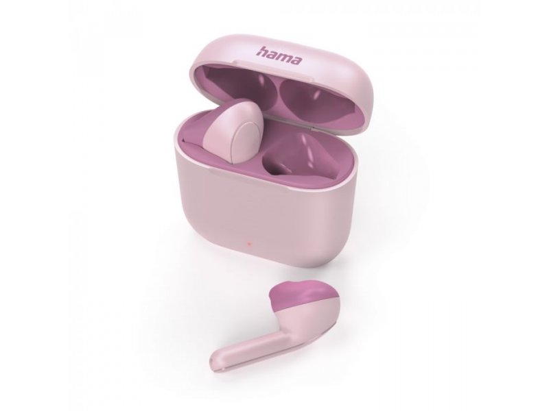 | Karakteristike | Hama roze "Freedom Light" Bluetooth slušalice sa integrisanim mikrofonom, senzorom za kontrolu na dodir, True Wireless i komande glasom. Namenjene su komfornom telefoniranju u kolima, kancelariji ili u pokretu, sa radnim dometom do 10m. Dodirom se moze kontrolisati pozivanje, primanje, odbijanje poziva i zvanje zadnjeg broja, kao i kontrola muzike (play/pause). Poseduju kutiju za odlaganje koja je ujedno i punjac, a napaja se putem USB-C kabla, za sta je potrebno oko 2.5h da se u potpunosti napuni. Puna baterije pruza oko 5h razgovora, 7h reprodukcije muzike i 150h u stanju mirovanja. Slusalice podrzavaju Apple Siri i Google Assistant. Osetljivost slušalica je ~102dB, frekventni opseg 20Hz-20kHz, impedansa 32 Ohm, masa 40 g. |