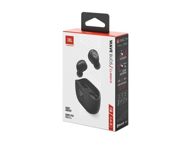 | Karakteristike | Tip slušalica: Bubice Povezivanje: Bluetooth Bluetooth verzija: 5.2 Osetljivost: 100 dB Prečnik zvučnika: 8 mm Frekventni odziv: 20Hz - 20 kHz Impedansa: 16 Ω Napajanje: Punjiva baterija Vreme punjenja baterije: ≈ 2 h Ukupna autonomija baterije: 32 h Autonomija baterije slušalica: 8 h Autonomija baterije kućišta: 24 h Interfejs za punjenje: USB-C Ostalo: JBL Headphones App, Hands Free Call, TalkThru, Touch Control, True Wireless Stepen zaštite slušalica: IP54 Stepen zaštite kućišta: IPX2 Masa slušalica: 9 g Masa kućišta za punjenje: 34 g Boja: Crna |