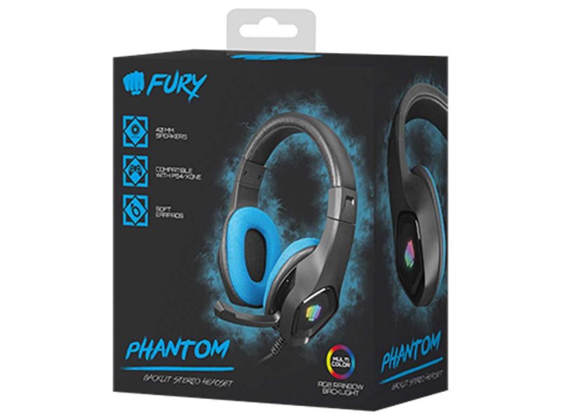 Fury Phantom gaming slušalice pružaju udobnost i svestranost za sve vaše potebe za igrama. Tokom uzbudljivih FPS ili MMO sesija igranja važno je imati neprekidan prenos i prijem zvuka. Dobra komunikacija sa saigračima omogućava postizanje boljih rezultata u timu, a kvalitetan zvuk daje prednost i omogućava brzu reakciju na sledeći potez protivnika. Sve ovo može biti vaše s Fury slušalicama. Zatvoreni dizajn preko uha omogućava da u potpunosti osetite izuzetno snažne basove, a mekani jastučići od kože omogućavaju dugotrajan komfor. Povezivanje se vrši preko 2 x 3.5mm jack-a.