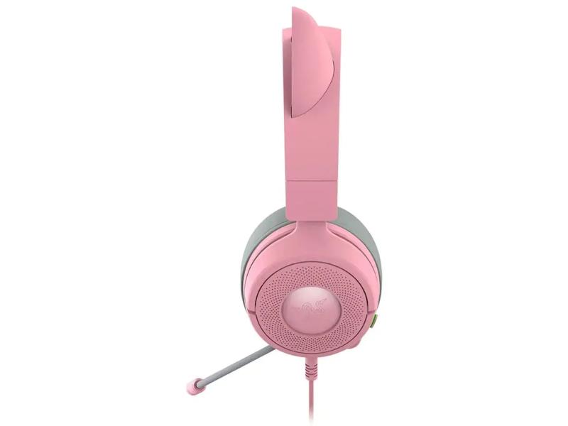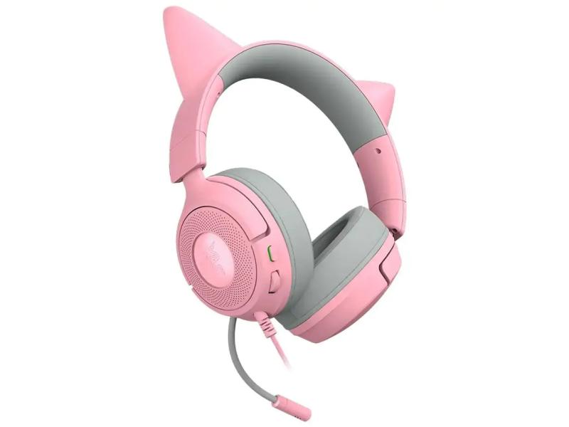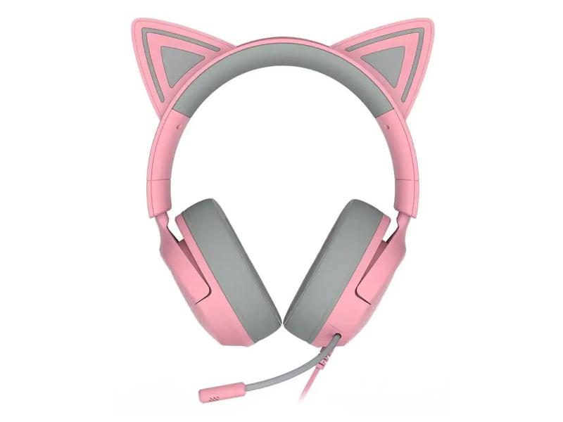 | Karakteristike | Razer Kraken Kitty Edition V3 X - Quartz Edition donosi spoj razigranog dizajna i ozbiljnih performansi, kreiran za gejmere i strimere koji žele da se istaknu. Ove žičane slušalice sa prepoznatljivim mačjim ušima nisu samo vizuelno upečatljive – one nude udobnost za celodnevno nošenje, kristalno čist zvuk i mikrofon koji precizno prenosi tvoj glas, bilo da si u žaru gejminga ili u interakciji sa publikom. Prepoznatljive mačje uši sa stilom: Dizajn koji je osvojio gejming svet – mačje uši na slušalicama nisu samo dekoracija, već izraz tvoje ličnosti. Bilo da strimuješ, igraš ili jednostavno uživaš u muzici, ove slušalice će te izdvojiti iz mase. Razer HyperClear kardioidni mikrofon: Mikrofon sa poboljšanim obrascem prijema fokusira se na tvoj glas i eliminiše pozadinsku buku, pružajući jasnoću u komunikaciji tokom timske igre, strimovanja ili svakodnevnih razgovora. Razer TriForce 40mm drajveri: Patentirani trodelni dizajn drajvera omogućava razdvajanje visokih, srednjih i niskih tonova, pružajući bogat i dinamičan zvuk – idealan za precizno praćenje protivnika u igri ili uživanje u omiljenim pesmama. 7.1 Surround zvuk: Napredni virtuelni surround sistem omogućava prostornu orijentaciju u igri, dajući ti prednost u takmičarskim okruženjima i dodatnu dubinu u audio doživljaju. Udobnost tokom celog dana: Slušalice teške samo 270 g sa jastučićima od hibridne tkanine i veštačke kože nude udobno prijanjanje i pasivnu izolaciju buke, savršene za duge sesije igranja ili strimovanja. Univerzalna kompatibilnost: Zahvaljujući 3.5 mm audio priključku, slušalice se lako povezuju sa PC-jem, konzolama i mobilnim uređajima, omogućavajući ti da uživaš u zvuku bez ograničenja. Specifikacija: