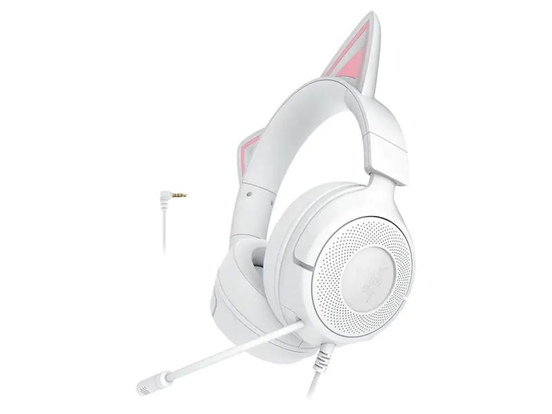 | Karakteristike | Razer Kraken Kitty Edition V3 X - White donosi spoj razigranog dizajna i ozbiljnih performansi, kreiran za gejmere i strimere koji žele da se istaknu. Ove žičane slušalice sa prepoznatljivim mačjim ušima nisu samo vizuelno upečatljive – one nude udobnost za celodnevno nošenje, kristalno čist zvuk i mikrofon koji precizno prenosi tvoj glas, bilo da si u žaru gejminga ili u interakciji sa publikom. Prepoznatljive mačje uši sa stilom: Dizajn koji je osvojio gejming svet – mačje uši na slušalicama nisu samo dekoracija, već izraz tvoje ličnosti. Bilo da strimuješ, igraš ili jednostavno uživaš u muzici, ove slušalice će te izdvojiti iz mase. Razer HyperClear kardioidni mikrofon: Mikrofon sa poboljšanim obrascem prijema fokusira se na tvoj glas i eliminiše pozadinsku buku, pružajući jasnoću u komunikaciji tokom timske igre, strimovanja ili svakodnevnih razgovora. Razer TriForce 40mm drajveri: Patentirani trodelni dizajn drajvera omogućava razdvajanje visokih, srednjih i niskih tonova, pružajući bogat i dinamičan zvuk – idealan za precizno praćenje protivnika u igri ili uživanje u omiljenim pesmama. 7.1 Surround zvuk: Napredni virtuelni surround sistem omogućava prostornu orijentaciju u igri, dajući ti prednost u takmičarskim okruženjima i dodatnu dubinu u audio doživljaju. Udobnost tokom celog dana: Slušalice teške samo 270 g sa jastučićima od hibridne tkanine i veštačke kože nude udobno prijanjanje i pasivnu izolaciju buke, savršene za duge sesije igranja ili strimovanja. Univerzalna kompatibilnost: Zahvaljujući 3.5 mm audio priključku, slušalice se lako povezuju sa PC-jem, konzolama i mobilnim uređajima, omogućavajući ti da uživaš u zvuku bez ograničenja. Specifikacija: