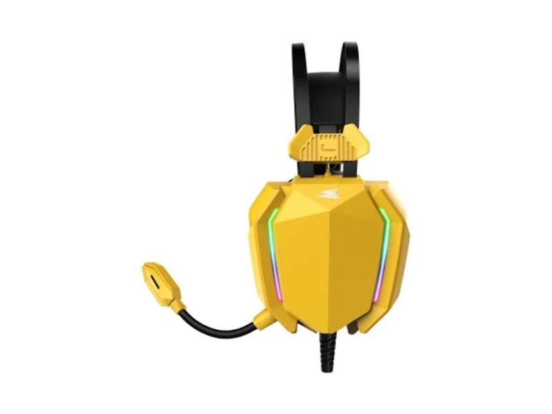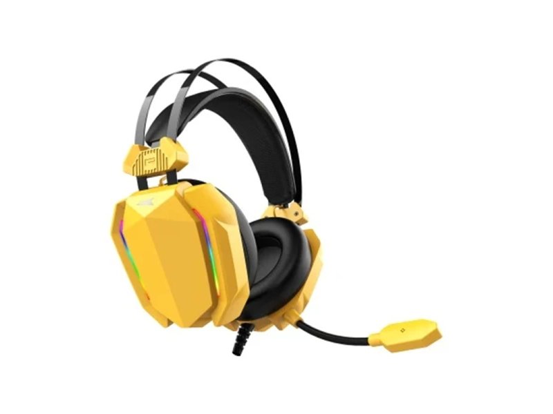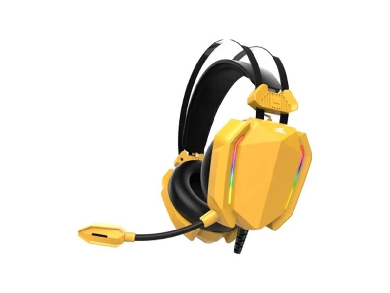 | Karakteristike | Veličina zvučnika: 50 mm (veliki drajveri za jači zvuk) Frekvencijski raspon: 20 Hz – 20 kHz (standard za pun spektar zvuka) Osetljivost: ~118 dB ± 3 dB (glasne i detaljne) Impedansa: 32 Ω ± 15 % Mikrofon Usmeren mikrofon (za bolju komunikaciju u igrama) Osetljivost mikrofona: ~–42 dB ± 2 dB Impedansa mikrofona: ~2200 Ω Dizajn i udobnost Dužina kabla: 2,15 m PVC Kontrola jačine: Na kablu/slusalicama Materijal: ABS plastika Težina: oko 310 g Priključci: 2× 3,5 mm (za zvuk i mikrofon) USB (za napajanje LED efekta) Kompatibilnost: PC (računari) Dodatno LED osvetljenje: RGB Boja: Žuta |