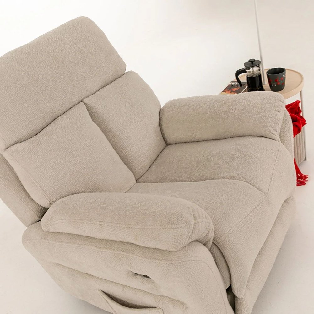 | Specifikacija | Fotelja Materijal rama: 70% Grab / 30% Iverica presvučena melaminom Materijal tkanine: 100% Poliester Tekstura tkanine: Angel Materijal nogara: Metal Punjenje: 32 DNS sunđer Debljina sunđera: 15 cm Dimenzije: Širina: 90 cm Visina: 100 cm Dubina: 95 cm Visina naslona za ruke: 65 cm Visina nogara: 1 cm Maksimalno opterećenje: 90 kg Dodatne funkcionalnosti: Električna i masažna funkcija |