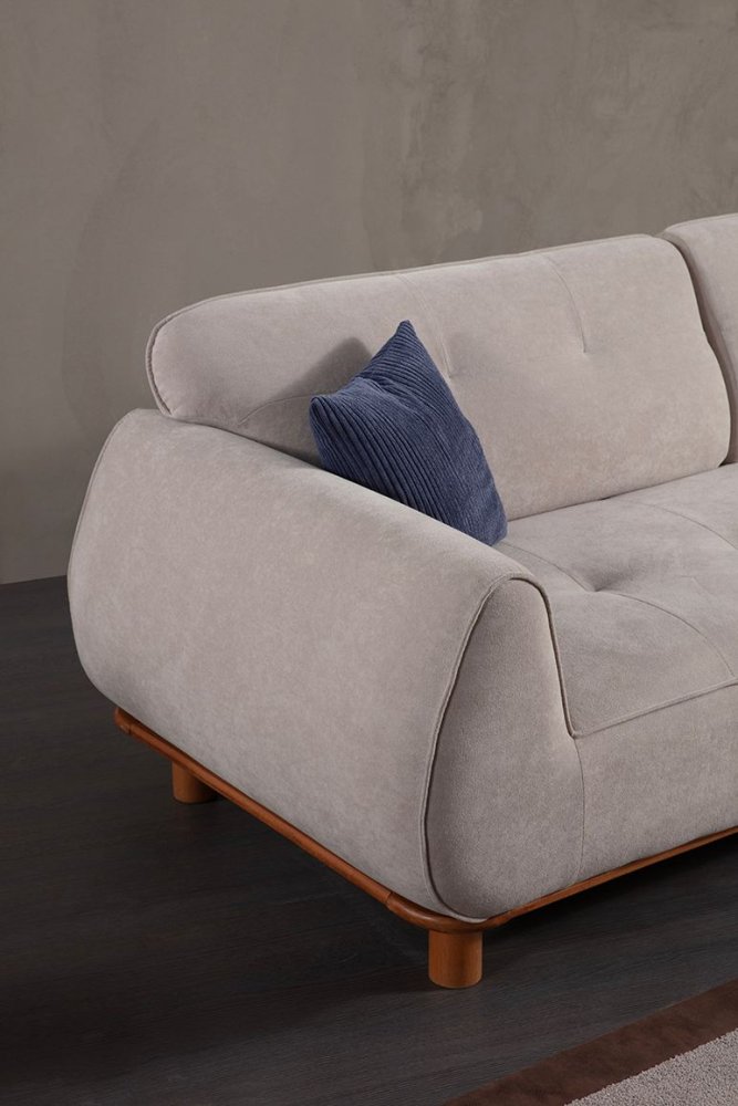 Sofa stoji na drvenim H-nogama visine 12 cm, prirodno farbanim. Ove visoke nogare daju sofi elegantan izgled, ali i praktičnost – olakšavajući čišćenje ispod nameštaja i doprinosi osećaju prozračnosti.