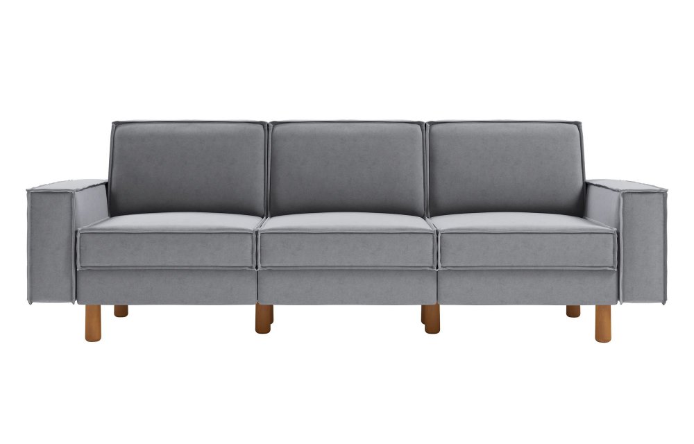 | Specifikacija | Sofa sa 3 sedišta Sparrow Extra 3 Fog Grey Walnut Okvir: 100% Čelik Tkanina: 100% Poliester (tekstura somota) Nogare od punog drveta (16 cm) Vodootporan Prenosivi jastuci 32 DNS meki sunđer / 28 DNS meki sunđer / 300 gr vlaknasto punjenje za sedenje 24 DNS Hiper Sunđer / Visco Scrap / Microgel Fiber Punjenje za leđa Sunđer Visina: 16 cm Uključena 2 jastuka Širina: 238 cm Visina: 89 cm Dubina: 87 cm Širina sedišta: 65 cm Visina sedišta: 47 cm Dubina sedišta: 55 cm Visina naslona za ruke: 61 cm Nosivost: 100 kg Lako sklapanje, nije potreban alat |