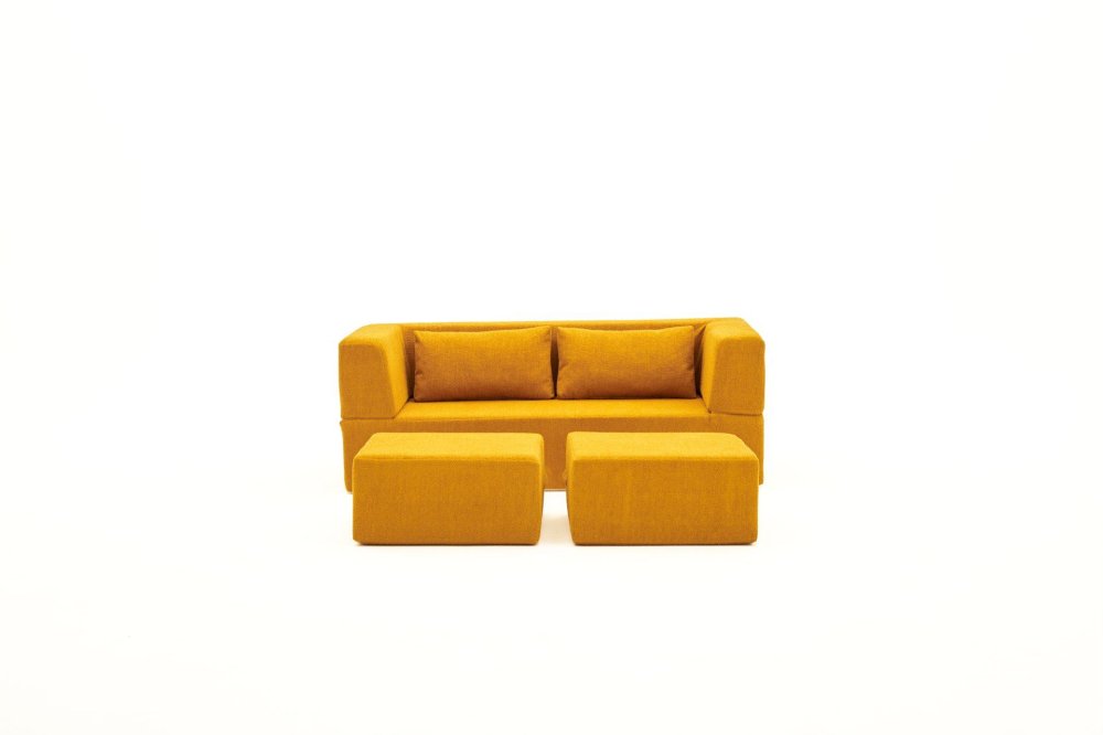 Dva tapacirana pufa se isporučuju uz sofu. Mogu se koristiti kao dodatna mesta za sedenje, oslonac za noge ili kao deo rasklopljenog ležaja.