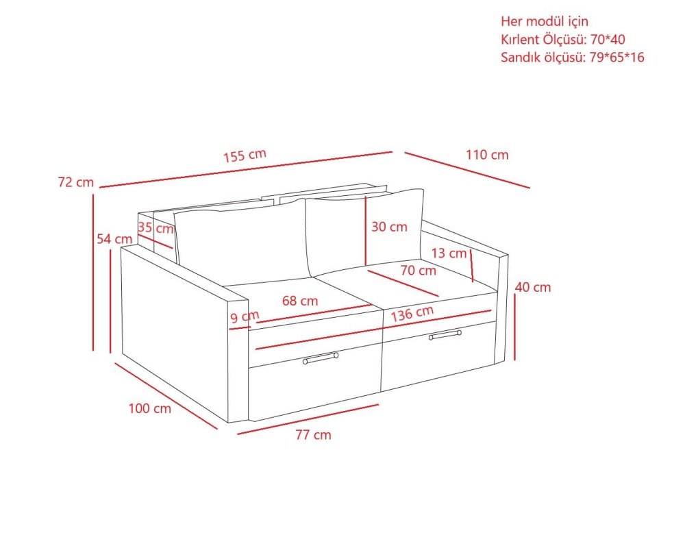 | Specifikacija | Sofa za 2 sedišta Saros Anthracite Okvir: 100% Jelovo drvo Tkanina: 100% Poliester (platnena tkanina sa teksturom) Širina: 155 cm Visina: 72 cm Dubina: 110 cm Širina sedišta: 136 cm Dubina sedišta: 70 cm Visina sedišta: 40 cm Visina naslona sedišta: 30 cm Visina naslona za ruke: 54 cm Škrinja: Širina: 76 cm Visina: 16 cm Dubina: 65 cm Jastuk: 70 x 40 cm 28 DNS Mekana penaza sedenje i leđa Jastuk ispunjen česticama pene Uklonjive navlake za jastuke Uključen prostor za skladištenje |