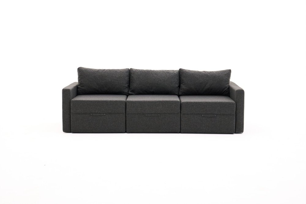 Sofa Saros Anthracite je elegantan i funkcionalan komad nameštaja koji kombinuje savremen dizajn, vrhunsku udobnost i dodatne praktične karakteristike. Njena antracit siva boja, teksturisana platnena tkanina i robusna struktura čine je savršenim izborom za moderne dnevne sobe i prostore za odmor. Namenjena za troje, ali zahvaljujući rasklopivoj funkciji i velikodušnim dimenzijama, lako se transformiše u udoban krevet ili prostor za druženje.