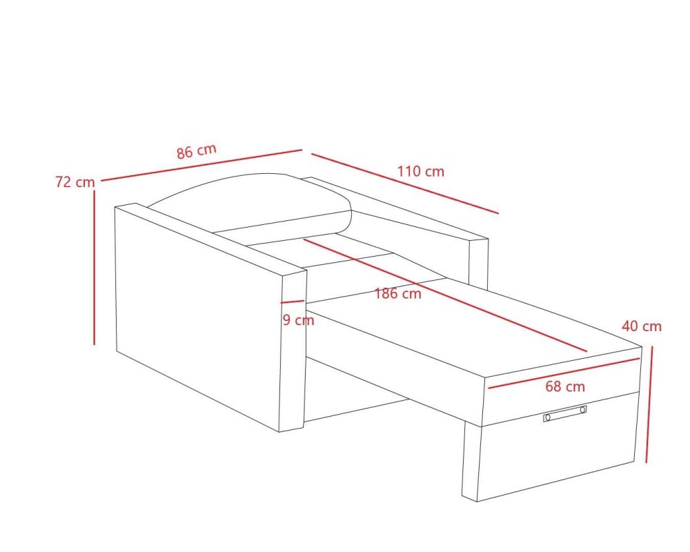 Metalna konstrukcija garantuje čvrstoću i dugotrajnost, dok je tkanina prijatna na dodir i pogodna za svakodnevnu upotrebu. Dizajniran u modernom stilu, ovaj model se lako uklapa u različite enterijere. Idealna je kao jednosed sa dodatnom funkcijom spavanja.