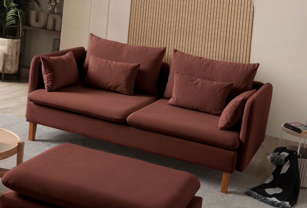 | Specifikacija | Sofa trosed Materijal rama: 70% Grab / 30% Iverica presvučena melaminom Materijal tkanine: 100% Poliester Tekstura tkanine: Somot Materijal nogara: Drvo Punjenje sedišta: 30 DNS sunđer Punjenje naslona: Silikon i sunđer Debljina sunđera: 20 cm Dimenzije: Širina: 195 cm Visina: 75 cm Dubina: 100 cm Visina sedišta: 45 cm Dubina sedišta: 95 cm Visina naslona za ruke: 70 cm Visina nogara: 17 cm Maksimalno opterećenje: 240 kg Ostalo: Uključeno je 6 jastuka |