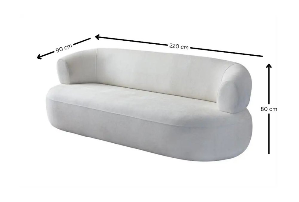 | Specifikacija | Sofa trosed Materijal rama: 70% Grab / 30% Iverica presvučena melaminom Materijal tkanine: 100% Poliester Tekstura tkanine: Bukle Materijal nogara: Plastika Punjenje: 30 DNS sunđer Debljina sunđera: 20 cm Dimenzije: Širina: 230 cm Visina: 70 cm Dubina: 70 cm Visina naslona za ruke: 66 cm Visina nogara: 1.5 cm Maksimalno opterećenje: 240 kg Ostalo: Uključena su 2 jastuka |