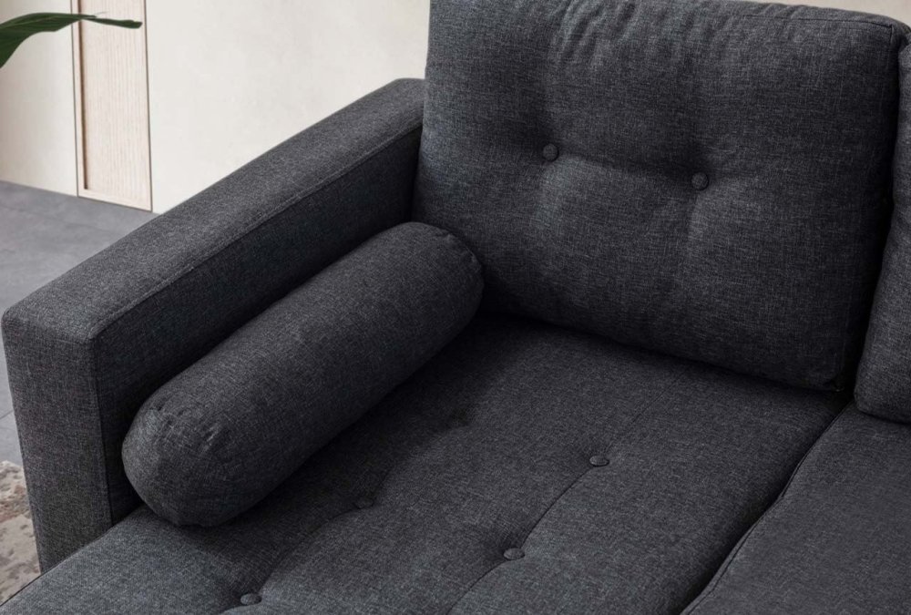 | Specifikacija | Ugaona garnitura Materijal rama: 70% Grab / 30% Iverica presvučena melaminom Materijal tkanine: 100% Poliester Tekstura tkanine: Lan Materijal nogara: Plastika Punjenje: 32 DNS sunđer Debljina sunđera: 15 cm Dimenzije: Širina: 205 x 150 cm Visina: 70 cm Dubina: 80 cm Visina naslona za ruke: 70 cm Visina nogara: 10 cm Maksimalno opterećenje: 240 kg Ostalo: Garnitura sa 5 jastuka Prenosivi jastuci naslona Napomena: Tkanina laka za održavanje |