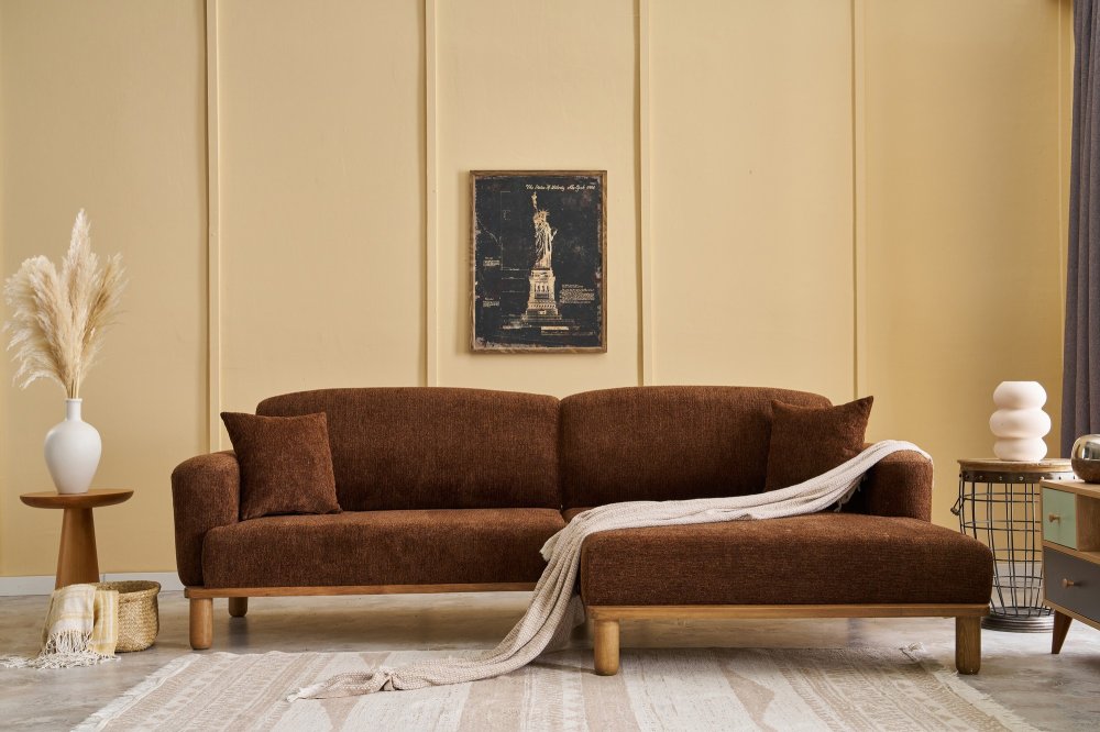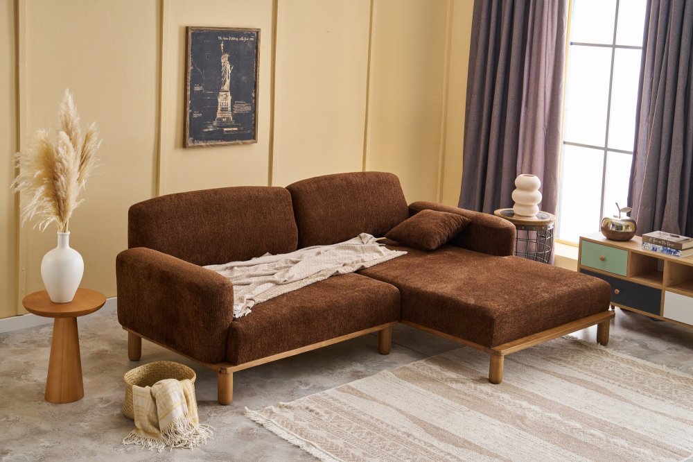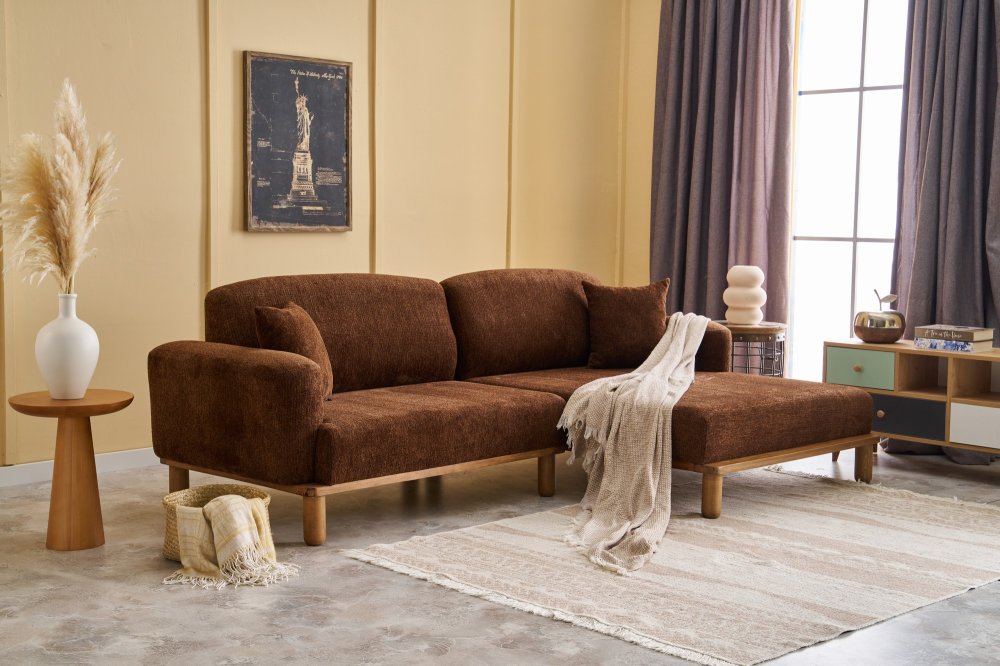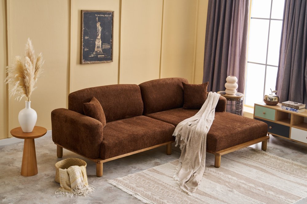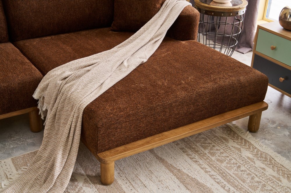 Specifikacija | Ugaona garnitura Materijal okvira: Drvo (bukva) Materijal tkanine: 100% Poliester (Tkanina sa teksturom od šenila) Materijal nogara: Drvo (bukva) Punjenje sedišta: 30 DNS pena Dimenzije: Širina: 265 cm Visina: 88 cm Dubina: 93 cm Visina sedišta: 40 cm Dubina sedišta: 60 cm Dimenzije kreveta: 265 x 160 cm Visina nogara: 18 cm |