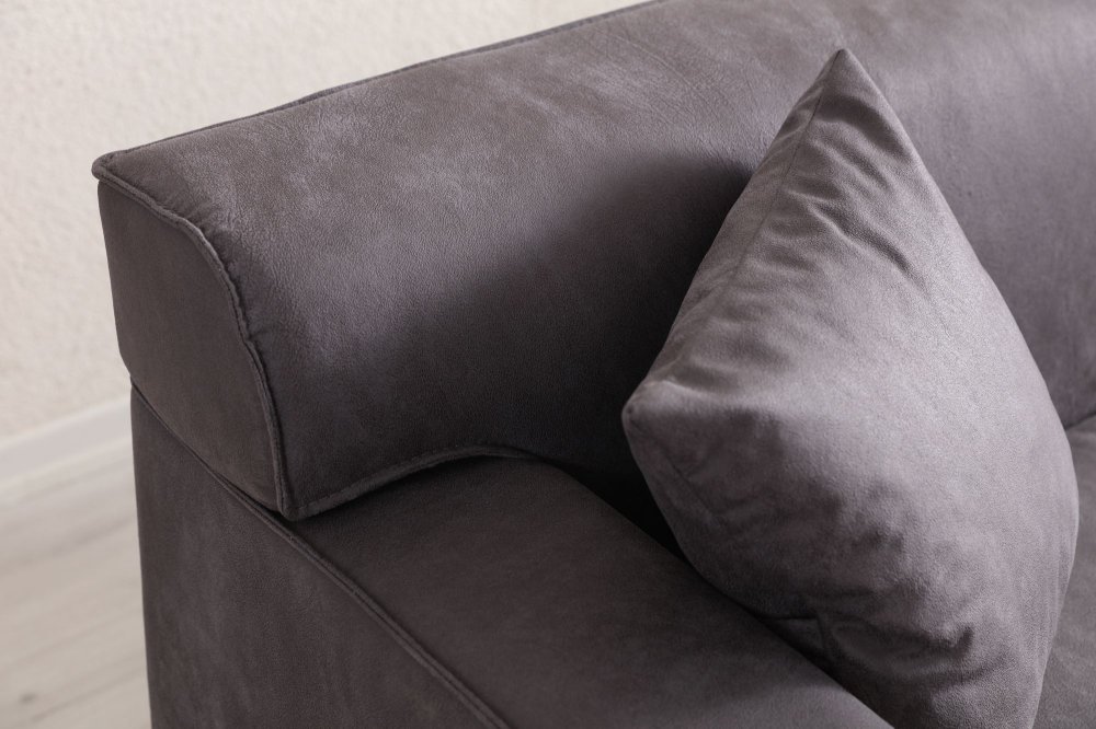 Sedišta su punjena sa 8 cm 28 DNS mekom sivom penom i 5 cm 24 DNS perjem, pružajući optimalnu podršku i udobnost. Nasloni su ispunjeni kombinacijom 24 DNS pene i perja. Garnitura uključuje dva jastuka punjena kombinacijom 60% seckane pene i 40% silikonske pene, što dodatno poboljšava osećaj komfora. Fiksni jastuci za sedenje i naslon osiguravaju stabilnost i dugotrajnost.