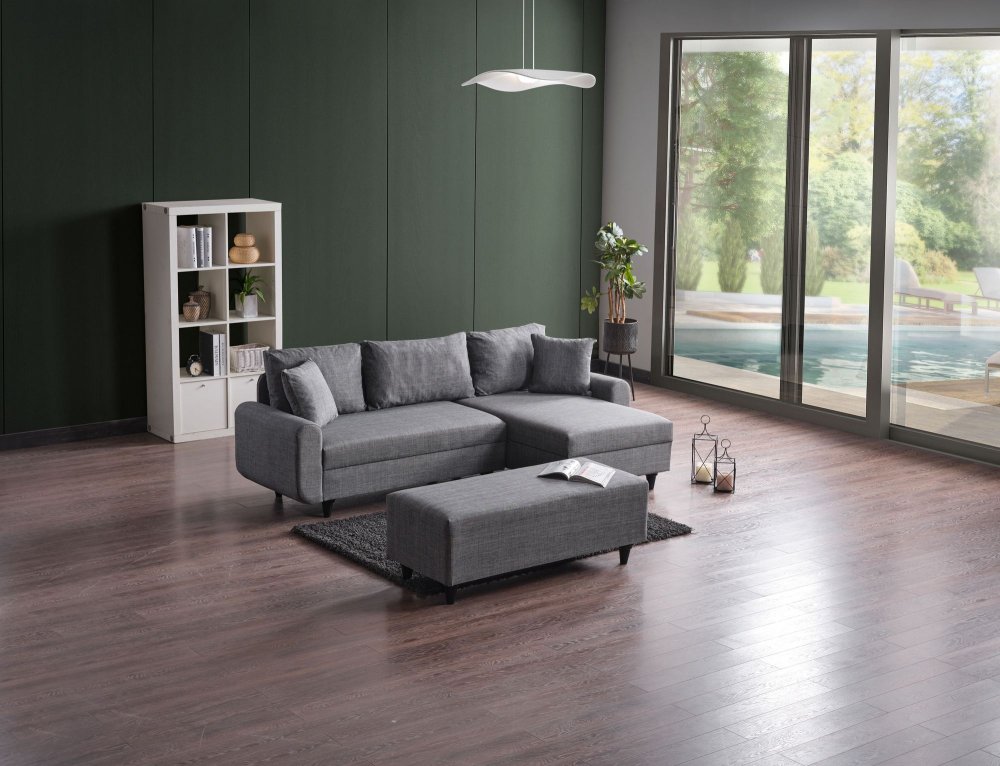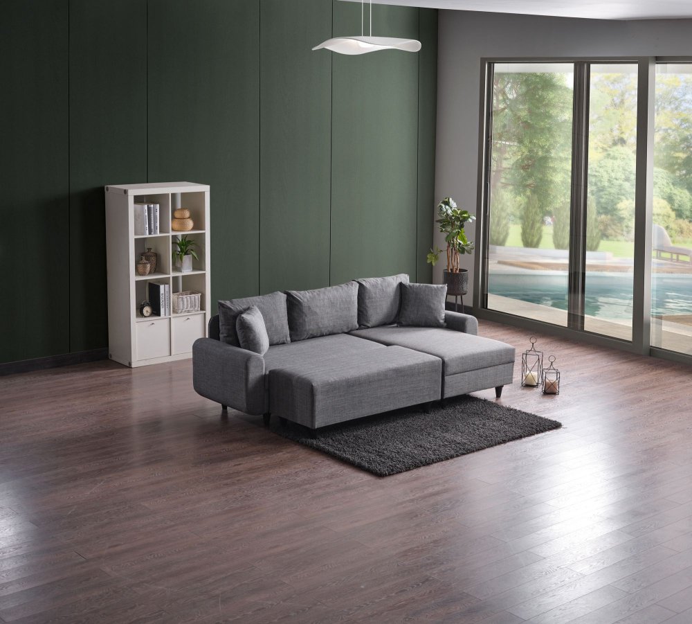 Ugaona sofa-krevet Flavia Grey predstavlja savršen spoj modernog dizajna, funkcionalnosti i udobnosti. Zahvaljujući jednostavnim linijama i neutralnoj sivoj boji, lako se uklapa u različite stilove enterijera – od minimalističkog do skandinavskog. Osim što pruža udobno sedenje tokom dana, lako se pretvara u praktičan ležaj za dvoje, idealan za goste ili svakodnevno spavanje.