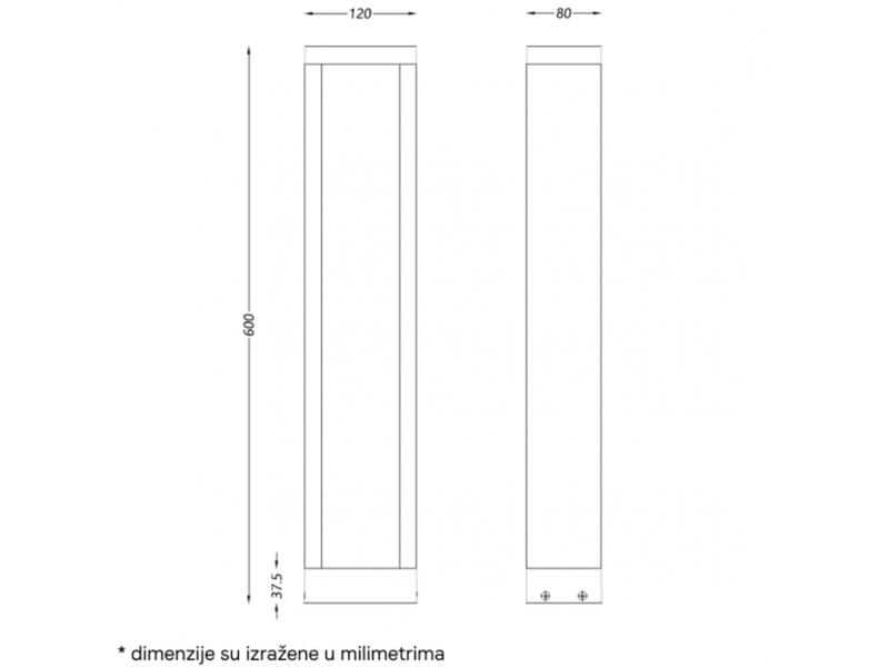 | Karakteristike | Nazivni napon: 220-240 V AC Nazivna snaga: 10 W Temperatura boje svetlosti: 3000 K Izvor svetlosti: LED Dimabilnost: Ne Materijal: Aluminijum Dimenzije: 45 x 130 x 900 mm Način montaže: Nadgradna/Podna Indeks reprodukcije boje (CRI): ≥90(Ra) Prosečan radni vek: 30000 h na 25°C Energetska efikasnost: A+ IP zaštita: IP65 |