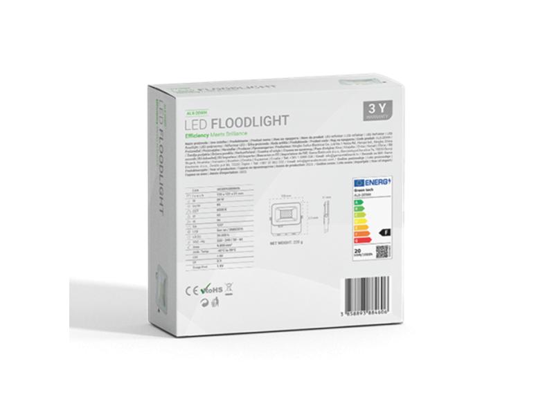 Karakteristike | Snaga: 20W Boja svetlosti: 6500K IP stepen zaštite: IP65 IK stepen zaštite: IK06 Napon: AC 220 - 240 V / 50 - 60 Hz FLUX: 85 lm / W Ukupan svetlosni tok: 1700 lm Ugao svetlosti: 120° LED diode: SMD2835 Radna temperatura: od - 40°C do 50°C CRI ≥ 80 DF: 0.9 Prednaponska zaštita: 1 KV Radni vek: 36.000 radnih sati Sertifikati: CE, RoHS Materijal: Aluminijum Materijal optike: Kaljeno staklo Neto težina: 0,220 kg Bruto težina: 0,250 kg Dimenzije artikla: 132 x 121 x 21 mm Dimenzije pakovanja: 135 x 128 x 28 mm |