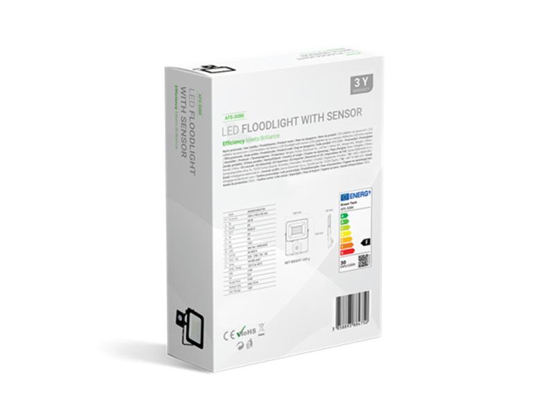 | Karakteristike | Snaga: 30W Boja svetlosti: 6500K IP stepen zaštite: IP65 IK stepen zaštite: IK06 Napon: AC 220 - 240 / 50 – 60 Ukupan svetlosni tok: 2550 lm FLUX: 85 lm / W Ugao svetlosti: 120° LED diode: SMD2835 Domet detekcije: max 10 m CRI: ≥ 80 DF: 0.9 Prednaponska zaštita: 2 KV Radna temperatura: od - 20 °C do 40 °C Radni vek: 36,000 radnih sati Sertifikati: CE, RoHS Materijal kućišta: Aluminijum Materijal optike: Kaljeno staklo Neto težina: 0,400 kg Bruto težina: 0,451 kg Dimenzije artikla: 168 x 196 x 50 mm Dimenzije pakovanja: 171 x 201 x 50 mm |
