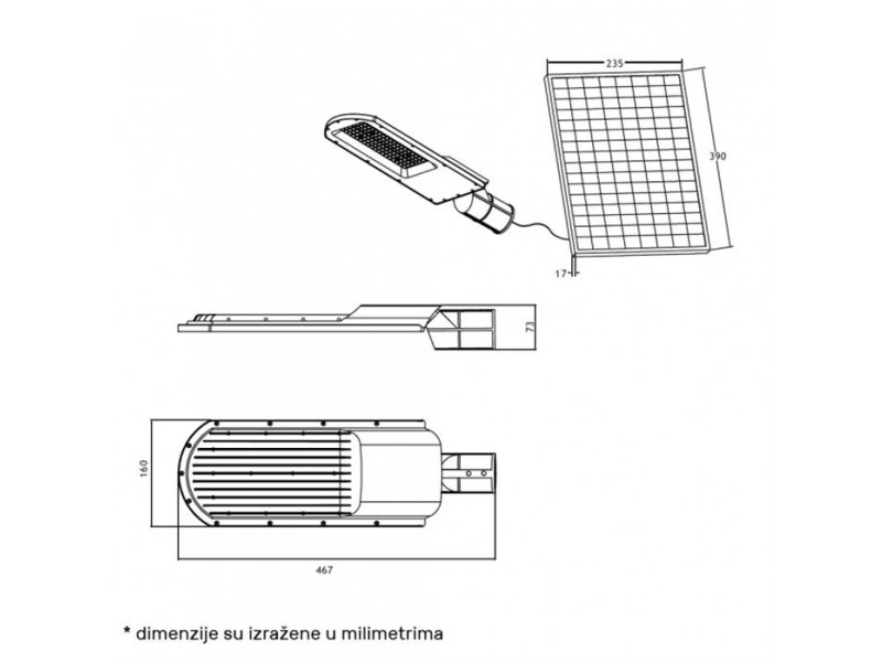 Dimenzije: 467 x 160 x 73 mm