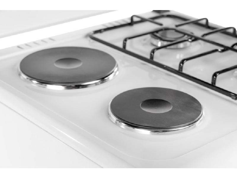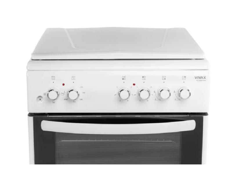 VIVAX samostojeći šporet FC-22602I WH je gasno-električni model šporeta sa dve strujne grejne ploče i dva gasna gorionika.