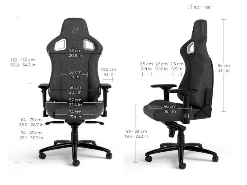 Dimenzije | Ukupna visina 129.5 – 139.5 cm (podesiva) Visina sedišta 48 – 58 cm (podesivo) Širina sedišta 56 cm (korisna širina 36 cm) Dubina sedišta 56.5 cm Visina naslona 84 cm Širina naslona 54 cm Prečnik baze 70 cm Preporučena visina korisnika 170 – 200 cm Maksimalna nosivost do 150 kg |