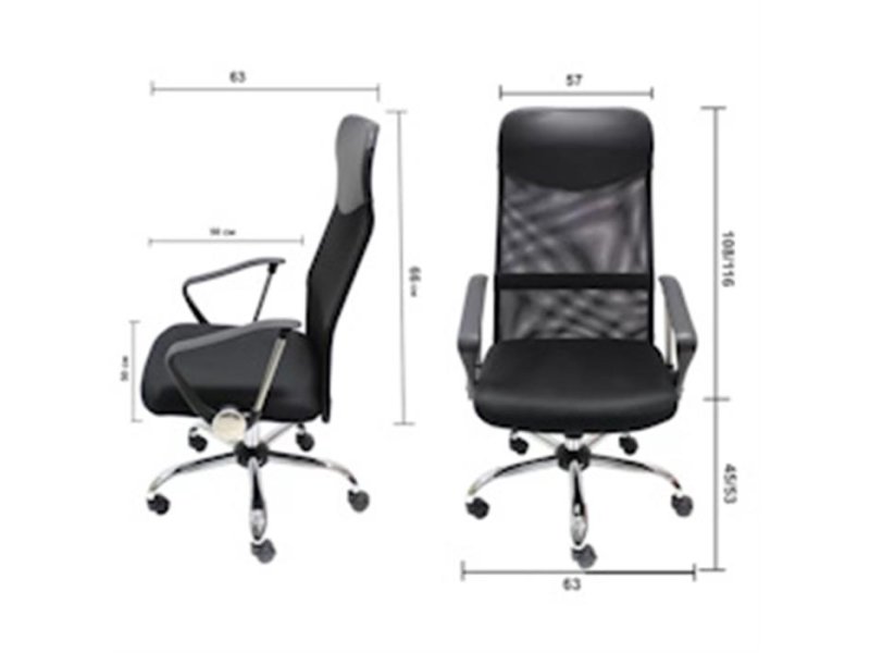 | Karakteristike | Konstrukcija: Metalna, hromirana Školjka: Odvojeno sedište i naslon Tapacir: Meš platno Naslon: Fiksni, mrežast Lumbalna podrška: Integrisana, fiksna Rukonasloni: Fiksni, metal sa poliamidom Sedište: Fiksno, tapacirani otpresak Amortizer: Pneumatski, hromiran Baza: Čelična hromirana zvezda Točkići: Za meke podove (plastični) Nosivost: 120 kg Mehanizam: Tilt - Ljuljanje uz zaključavanje u radnoj poziciji |