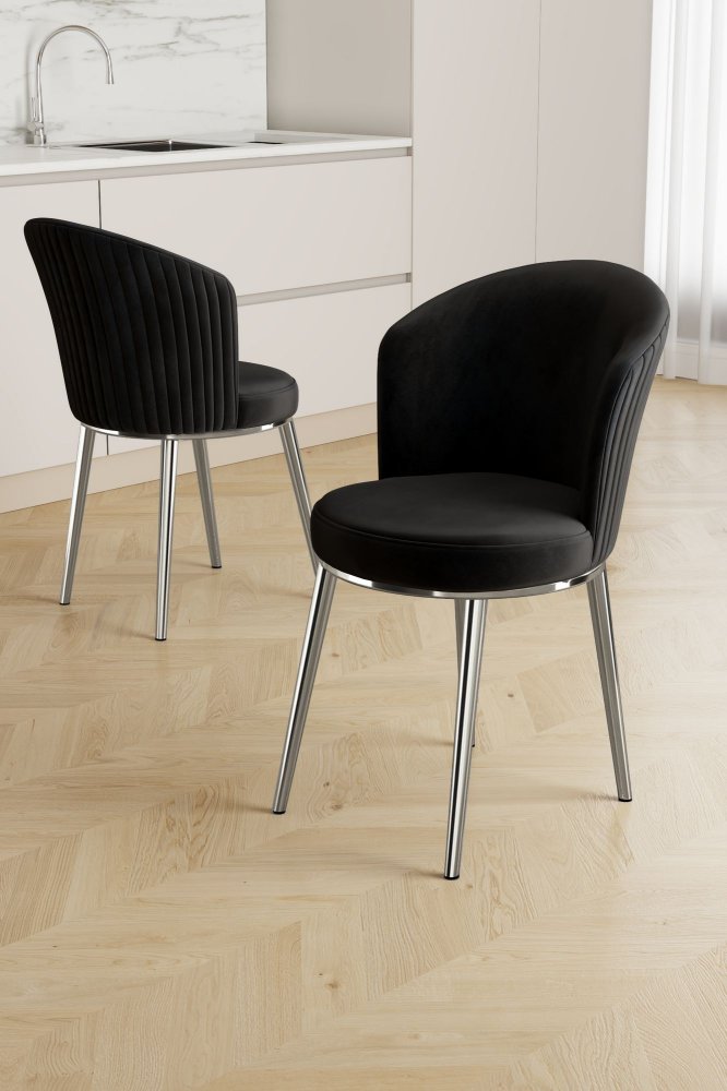 | Karakteristike | Set stolica (4 dela) Risa Black Chrome Ram: 100% METAL Naslon: ŠPERPLOČA Materijal: Mekana tkanina Širina: 45 cm Visina: 87 cm Dubina: 41 cm (4 komada) Visina sedišta: 49 cm 22 DNS pena za naslon / 28 DNS pena za sedenje Metalne nogare Broj pakovanja: 2 77 x 58 x 49 cm / 16 kg (1 komad) 63 x 49 x 45 cm / 8 kg (1 komad) |
