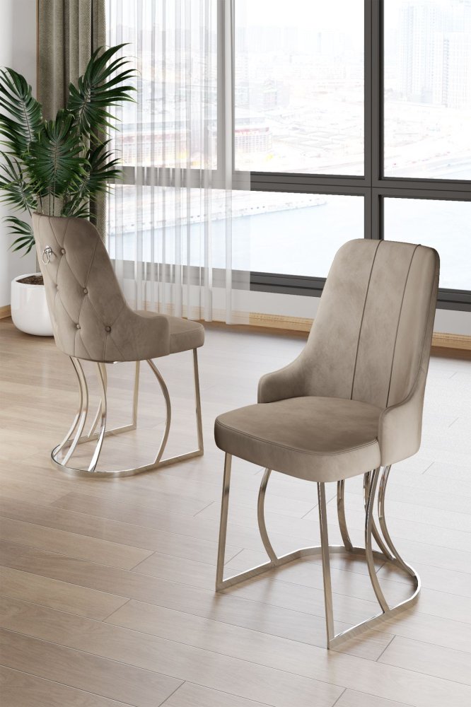 | Karakteristike | Set stolica (6 delova) Puva Cappuccino Chrome 100% METAL Tkanina: Mekana tkanina Širina: 44 cm Visina: 98 cm Dubina: 46 cm (6 komada) Visina sedišta: 50 cm 18 DNS pena za leđa / 22 DNS pena za sedenje Metalne nogare Broj pakovanja: 5 85 x 59 x 50 cm / 24 kg (1 komad) 62 x 48 x 56 cm / 12 kg (1 komad) 45 x 48 x 63 cm / 6 kg (3 komada) |