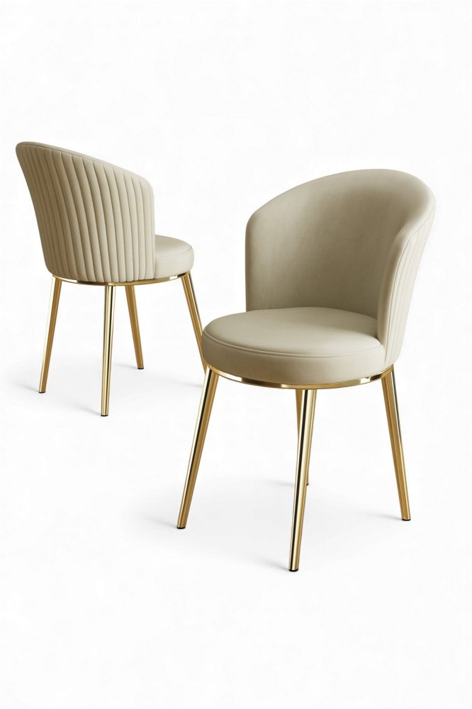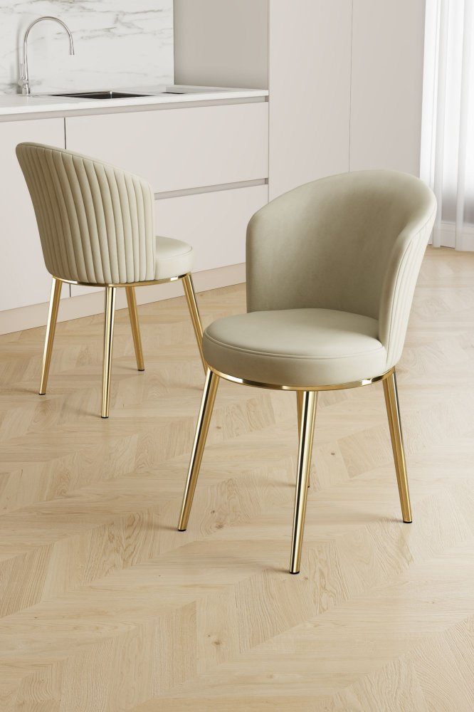 | Karakteristike | Set stolica (6 delova) Risa Cream Gold Ram: 100% METAL Naslon: ŠPERPLOČA Materijal: Mekana tkanina Širina: 45 cm Visina: 87 cm Dubina: 41 cm (6 komada) Visina sedišta: 49 cm 22 DNS pena za naslon / 28 DNS pena za sedenje Broj pakovanja: 2 85 x 59 x 50 cm / 24 kg (1 komad) 62 x 48 x 56 cm / 12 kg (1 komad) |