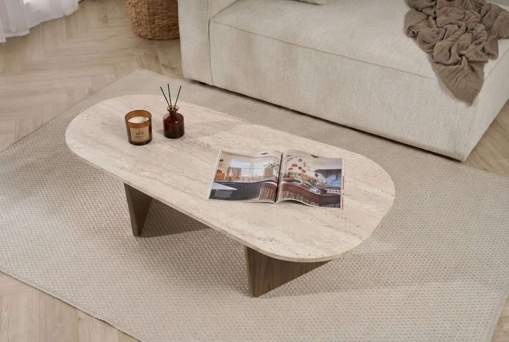 Specifikacija Klub stočić Ovalis Travertine Walnut